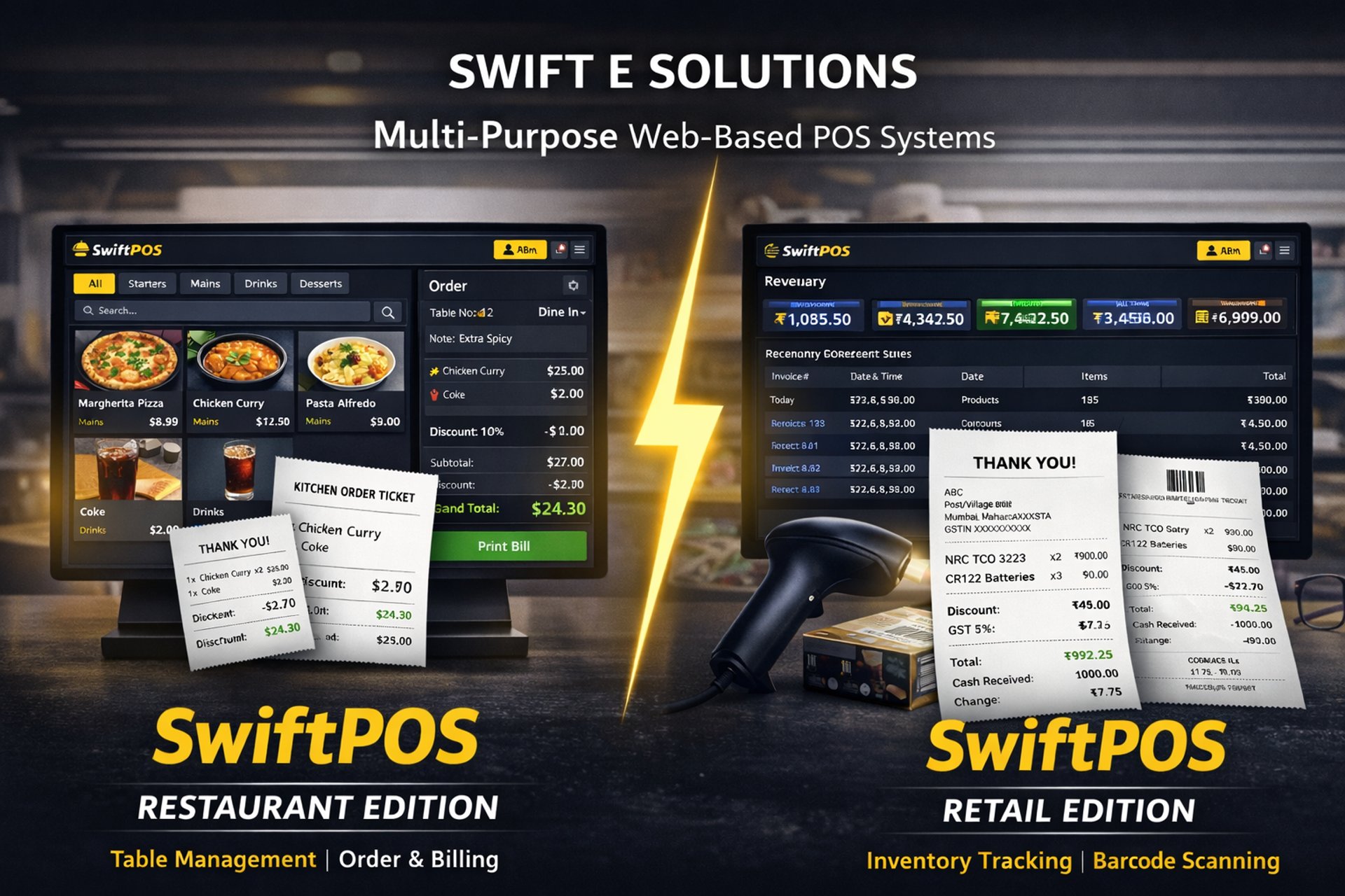 Our restaurant and retail POS solutions simplify billing, inventory, and sales with clean, mobile-friendly interfaces.